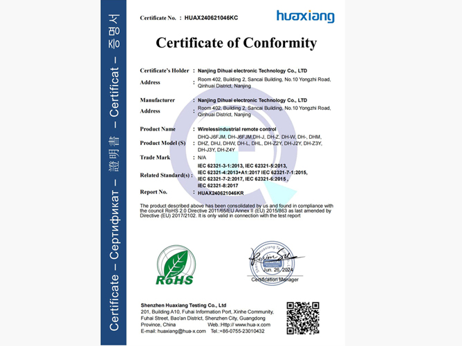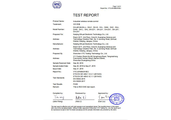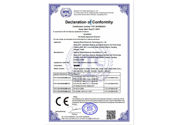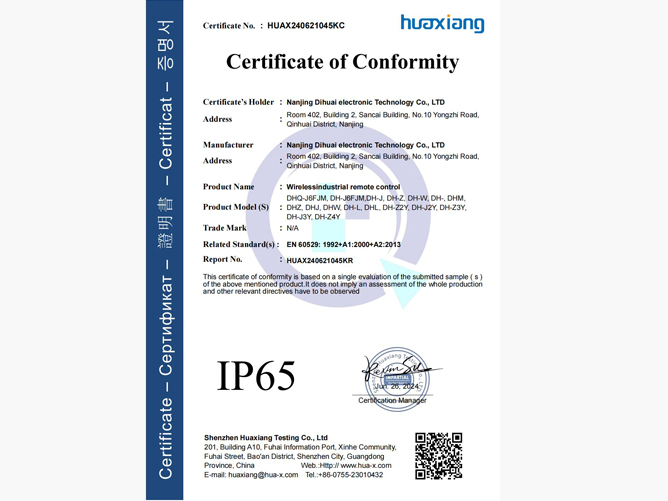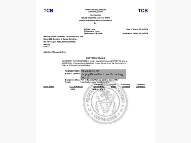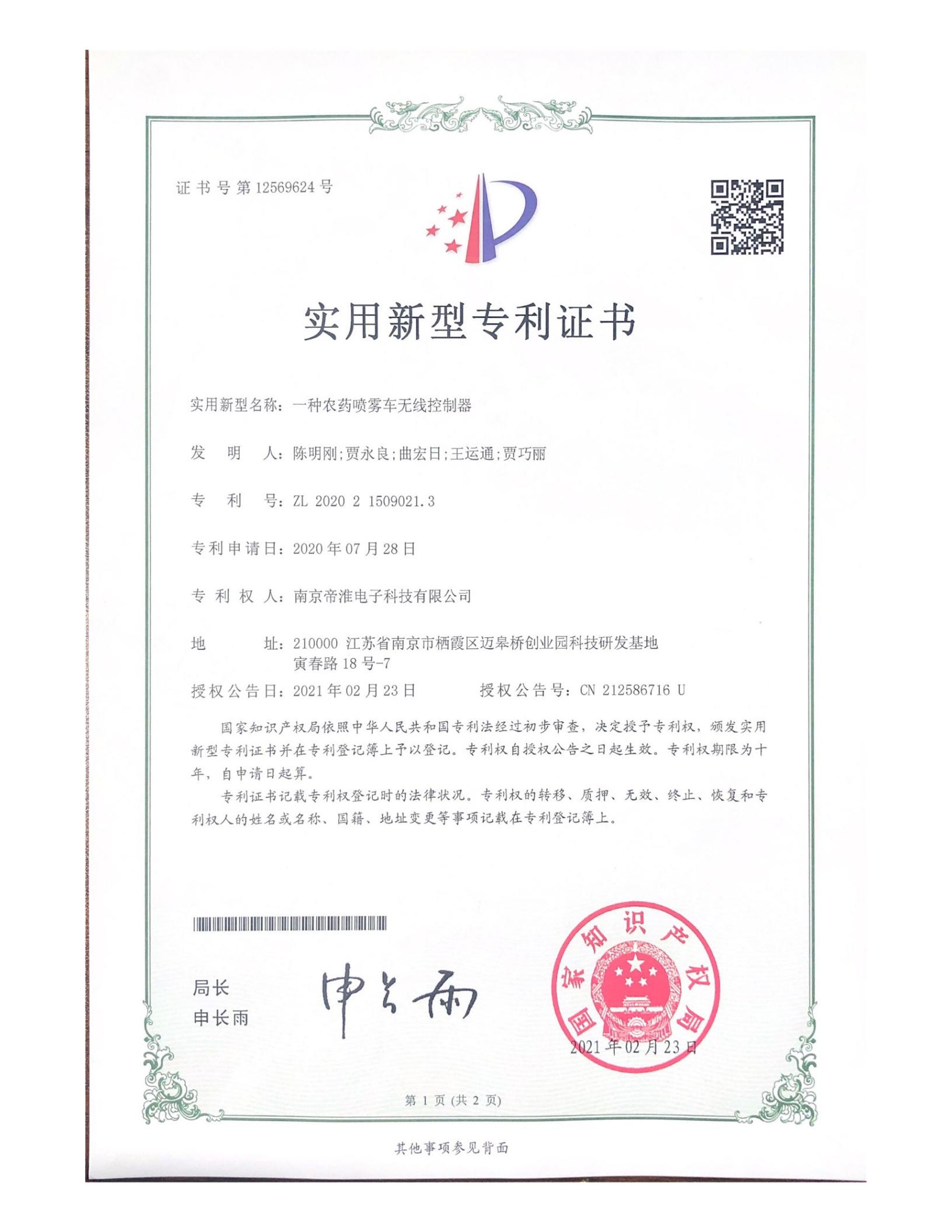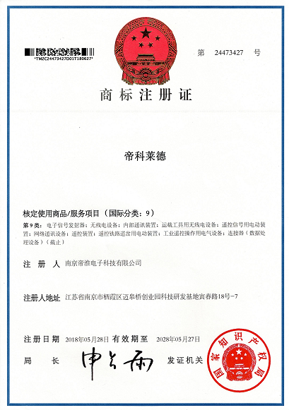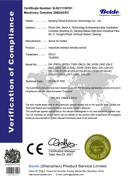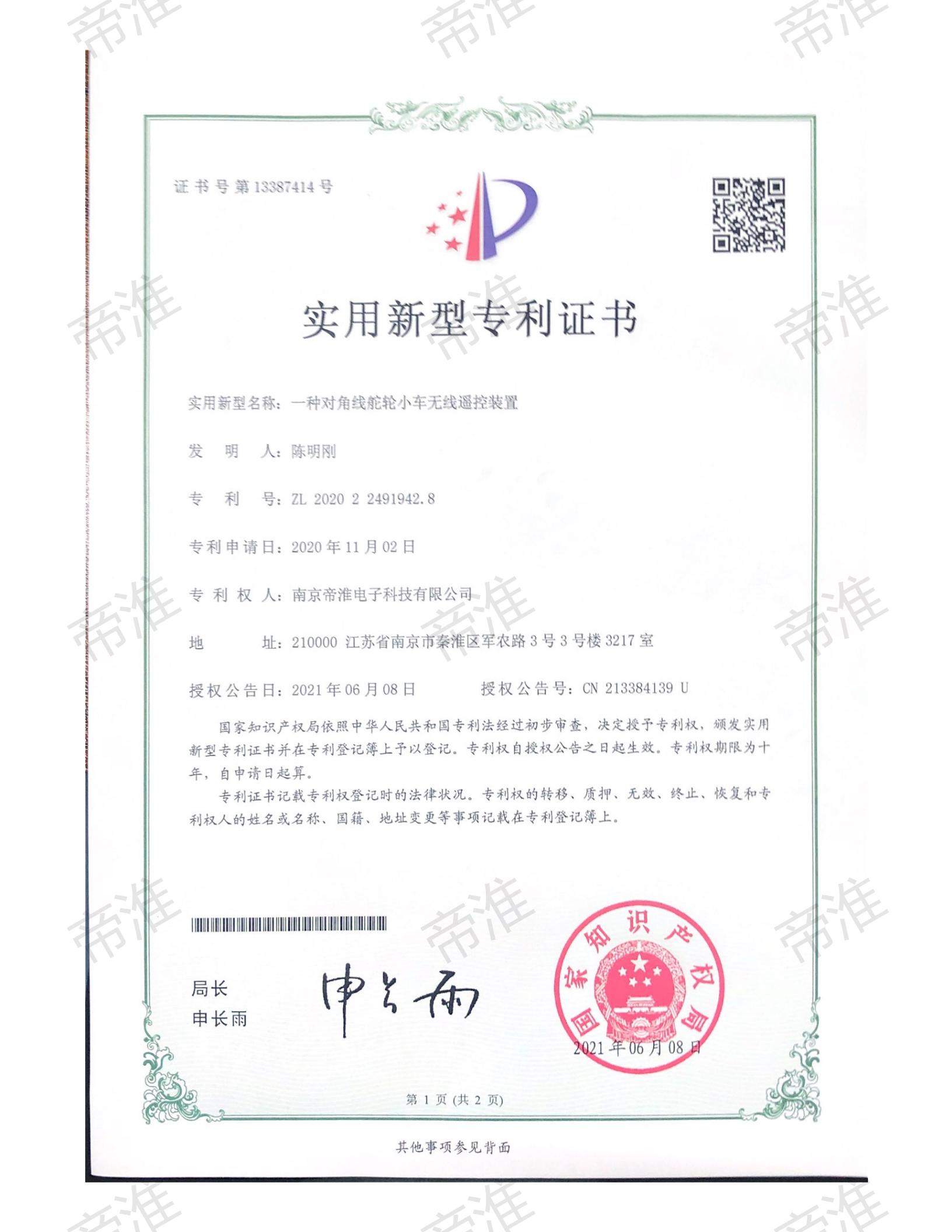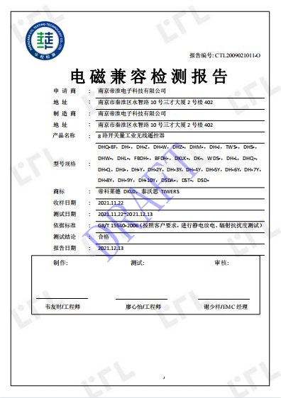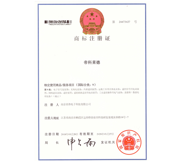 南京帝淮电子科技有限公司,国内工业遥控器行业领军企业,自主研发、定制、非标设计各类工业级无线??仄鳌⒐ひ导队邢呖刂破鳌⒅悄芑灾魉惴呒谋镜乜刂破鞯认盗胁?。已经申请及正在申请的技术专利、外观专利有近三十项左右,并通过了CE欧盟认证、国家级试验检验报告、EMC电磁兼容认证等。